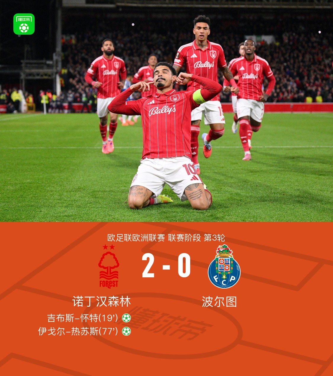 北京时间10月24日,欧足联欧洲联赛联赛阶段第3轮,诺丁汉森林与波尔图展开对决。比赛中,吉布斯-怀特主罚点球命中,为球队首开纪录。随后,伊戈尔-热苏斯同样以点球破门,扩大领先优势。全场比赛结束,诺丁汉森林以2比0战胜波尔图。