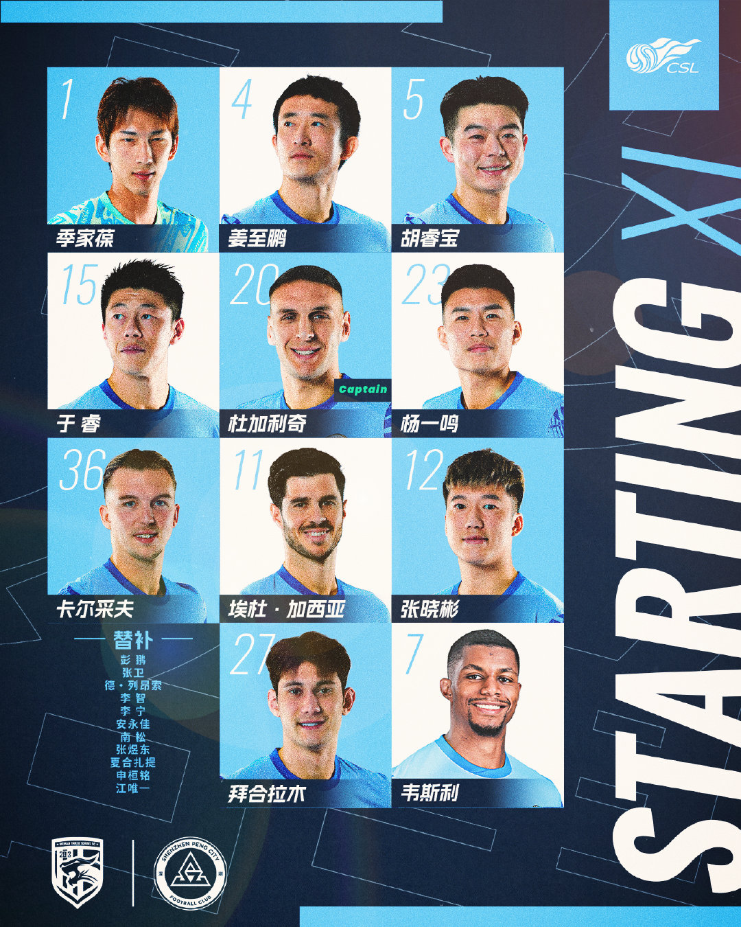 🔥深圳新鹏城客战武汉三镇首发阵容出炉!