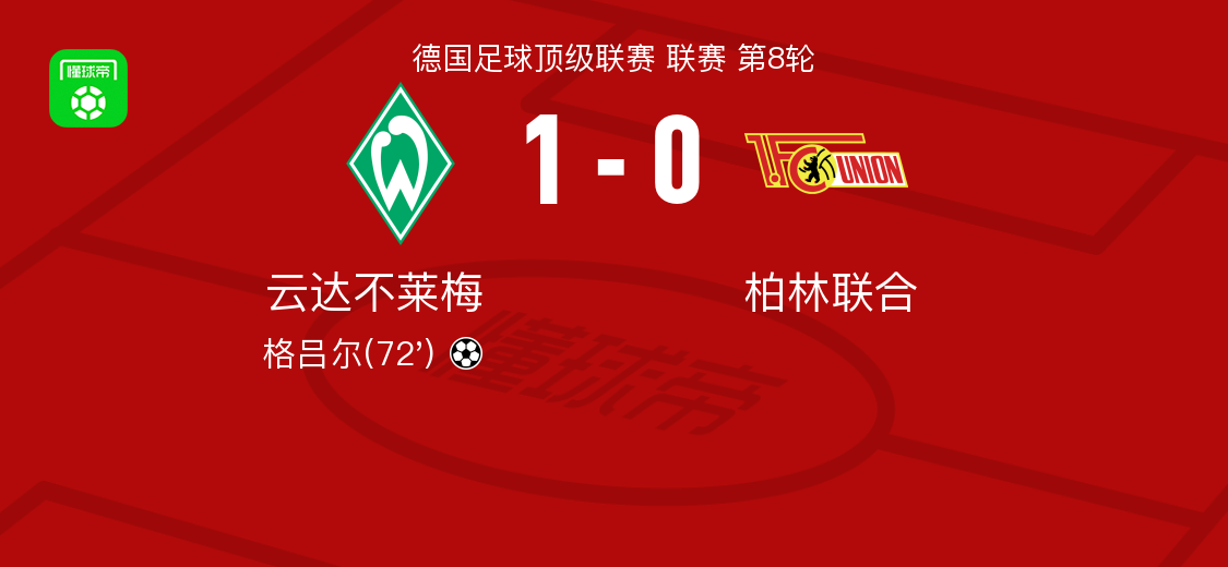 北京时间10月25日,2024-2025赛季德国足球甲级联赛第8轮,云达不莱梅坐镇主场迎战柏林联合。比赛中,菅原由势送出助攻,格吕尔破门得分,帮助球队取得领先。凭借此粒进球,云达不莱梅以1-0战胜对手,全取三分。