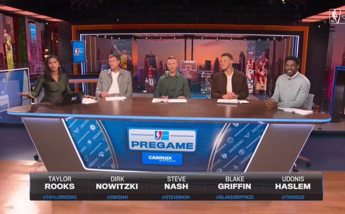 在新赛季首期节目中,“NBA on Prime”节目组请到了多位前NBA球星,包括独行侠传奇德克-诺维茨基、太阳名宿史蒂夫-纳什、2009年状元秀布雷克-格里芬和热火老队长乌杜尼斯-哈斯勒姆。