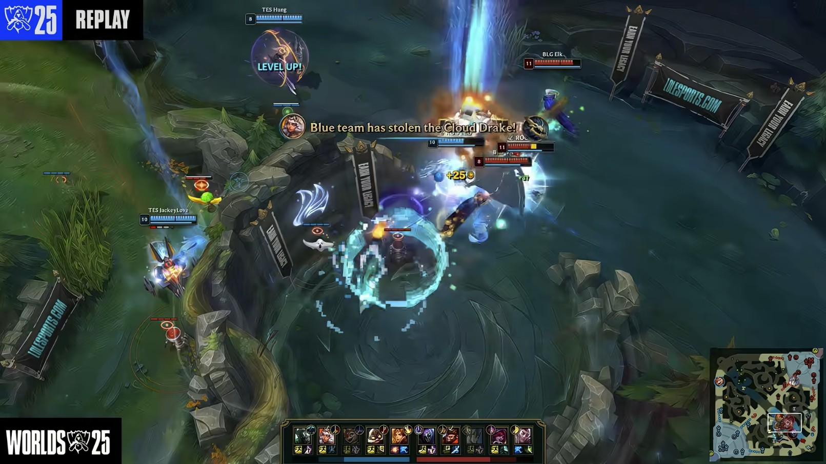 第25分钟,TES拿下第二条风龙后,小火龙在前往下路清线途中被抓死,BLG1换2小赚;