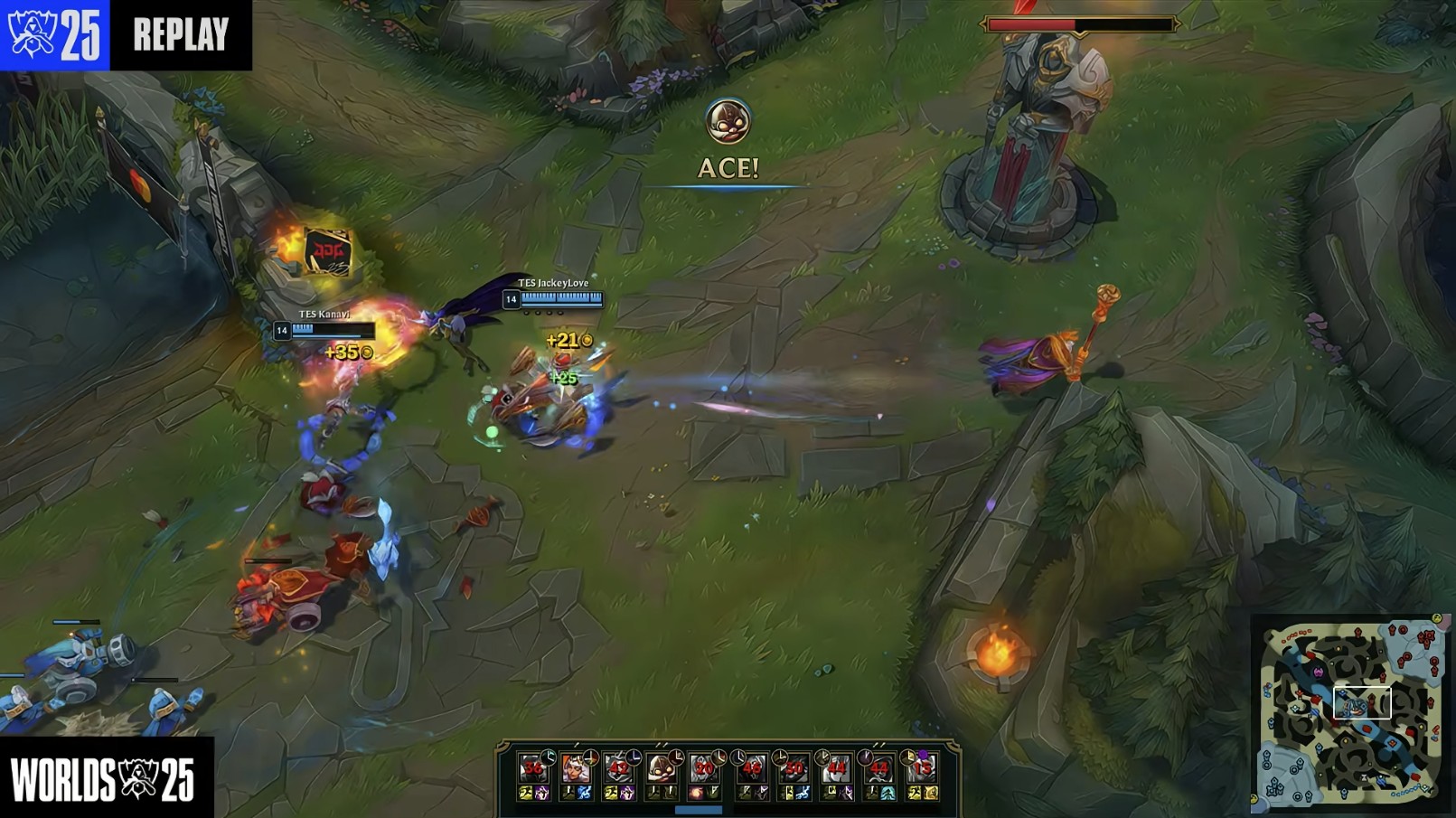 第35分钟龙魂团,TES拿下风龙魂后打出1换5ACE!游戏结束,滔搏晋级八强!