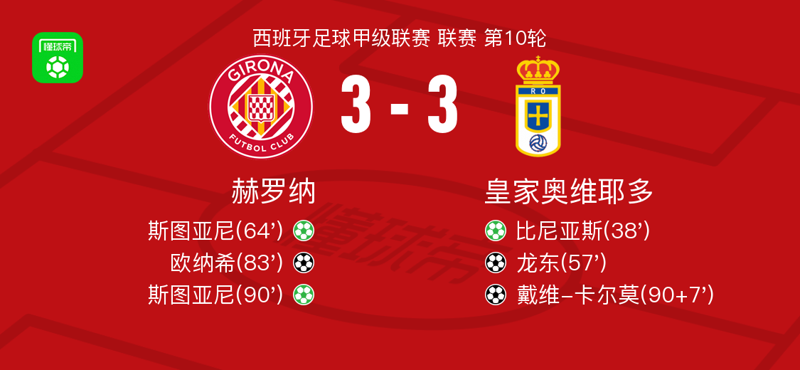 北京时间10月25日,西班牙足球甲级联赛第10轮,赫罗纳坐镇主场迎战皇家奥维耶多。比赛中,皇家奥维耶多率先打破僵局,比尼亚斯主罚点球命中,帮助球队取得领先。随后,科伦巴托送出精准助攻,龙东接球后冷静施射得手,客队进一步扩大优势。
