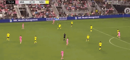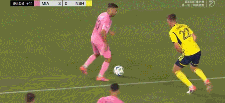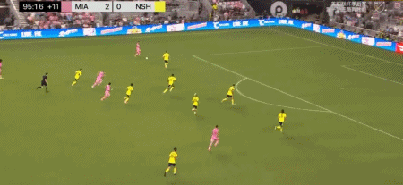 第90+7分钟,阿尔巴传中,梅西门前补射破门完成双响,迈阿密国际3-0
