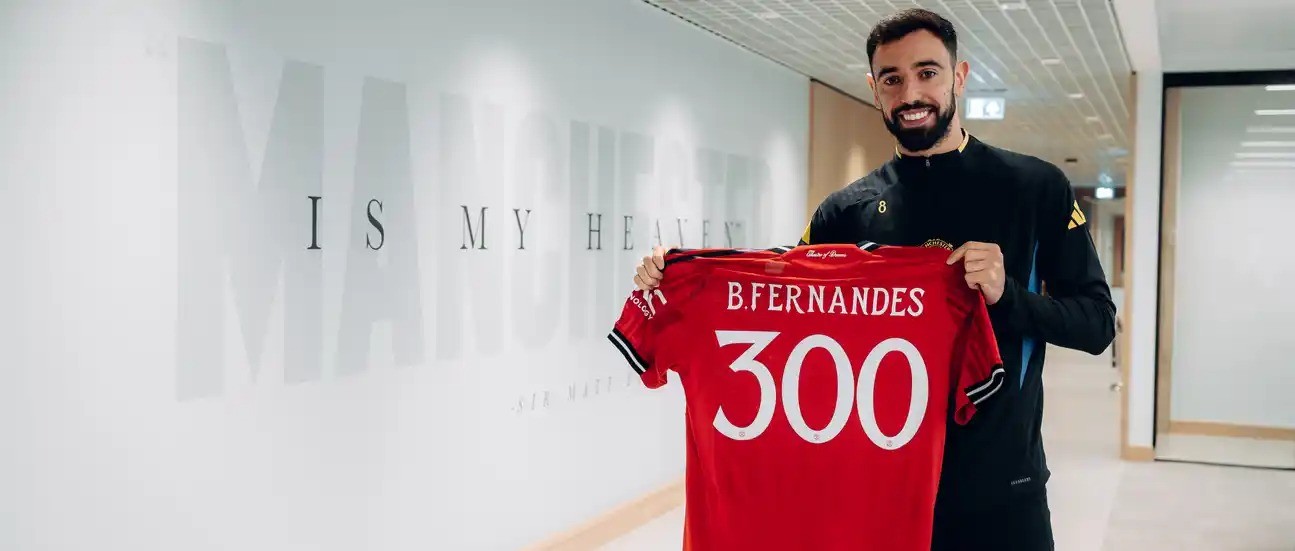 此役主场对阵布莱顿,布鲁诺-费尔南德斯首发出战,迎来曼联生涯各项赛事第300次出场。