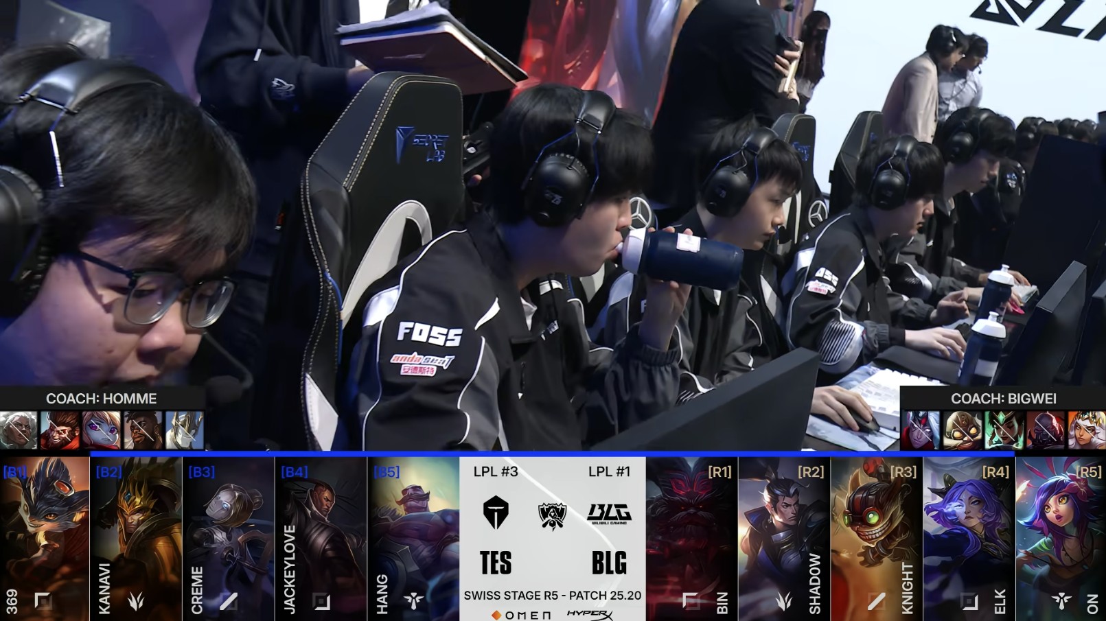 北京时间10月25日,英雄联盟S15世界赛进入瑞士轮收官日。LPL一号种子BLG与三号种子TES进行内战争夺一个八强席位。第一局游戏前期,Kanavi皇子节奏起飞原本为TES奠定了很大幅度的前期优势。但第二条小龙刷新前,Jackeylove在河道被直接开死,就此TES形势急转直下。BLG资源全吃,轻松结束第一局游戏1-0暂时领先。
