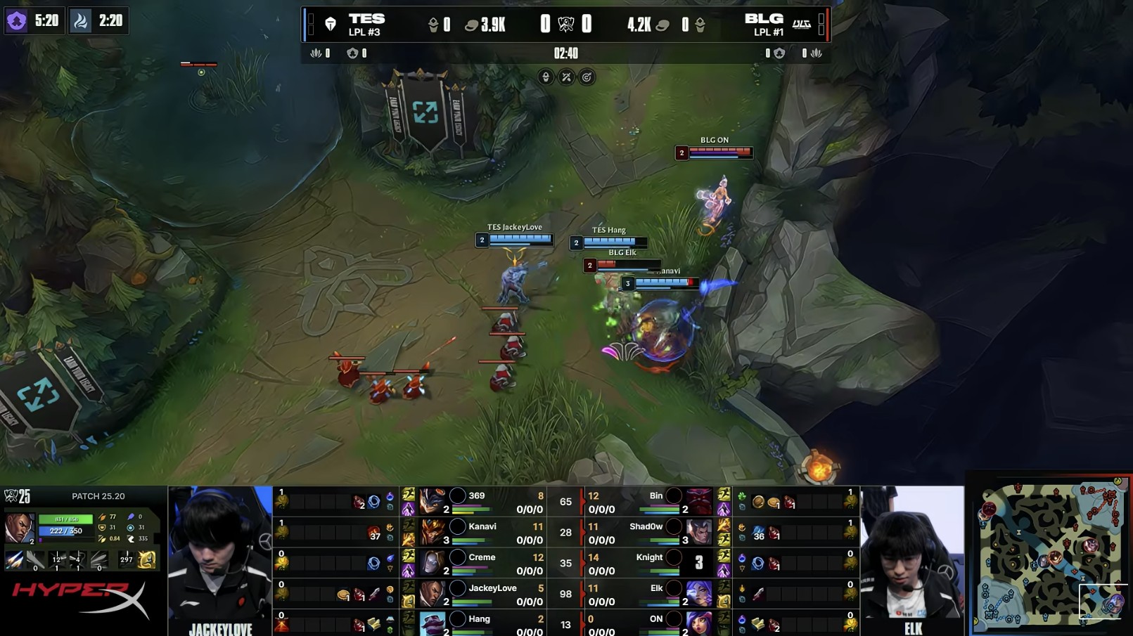 第2分钟,Kanavi打野变奏三级抓下,双方交出5个闪现后,Elk被抓死爆发本局一血;