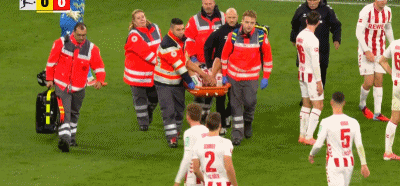 第84分钟,小红书丨许伯斯膝盖受伤被担架抬下,科隆无换人名额少打一人