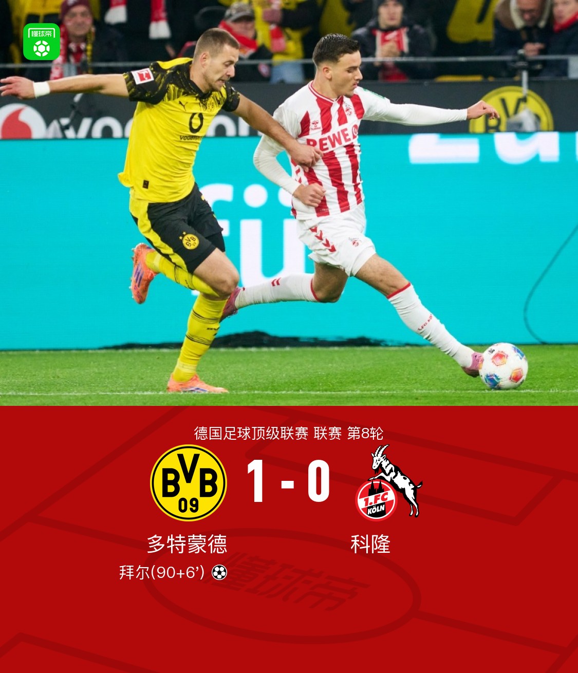 北京时间10月26日,2024-2025赛季德国足球甲级联赛第8轮,多特蒙德坐镇主场迎战科隆。下半场补时阶段,法比奥-席尔瓦送出助攻,拜尔完成破门。凭借此球,多特蒙德以1-0战胜科隆。