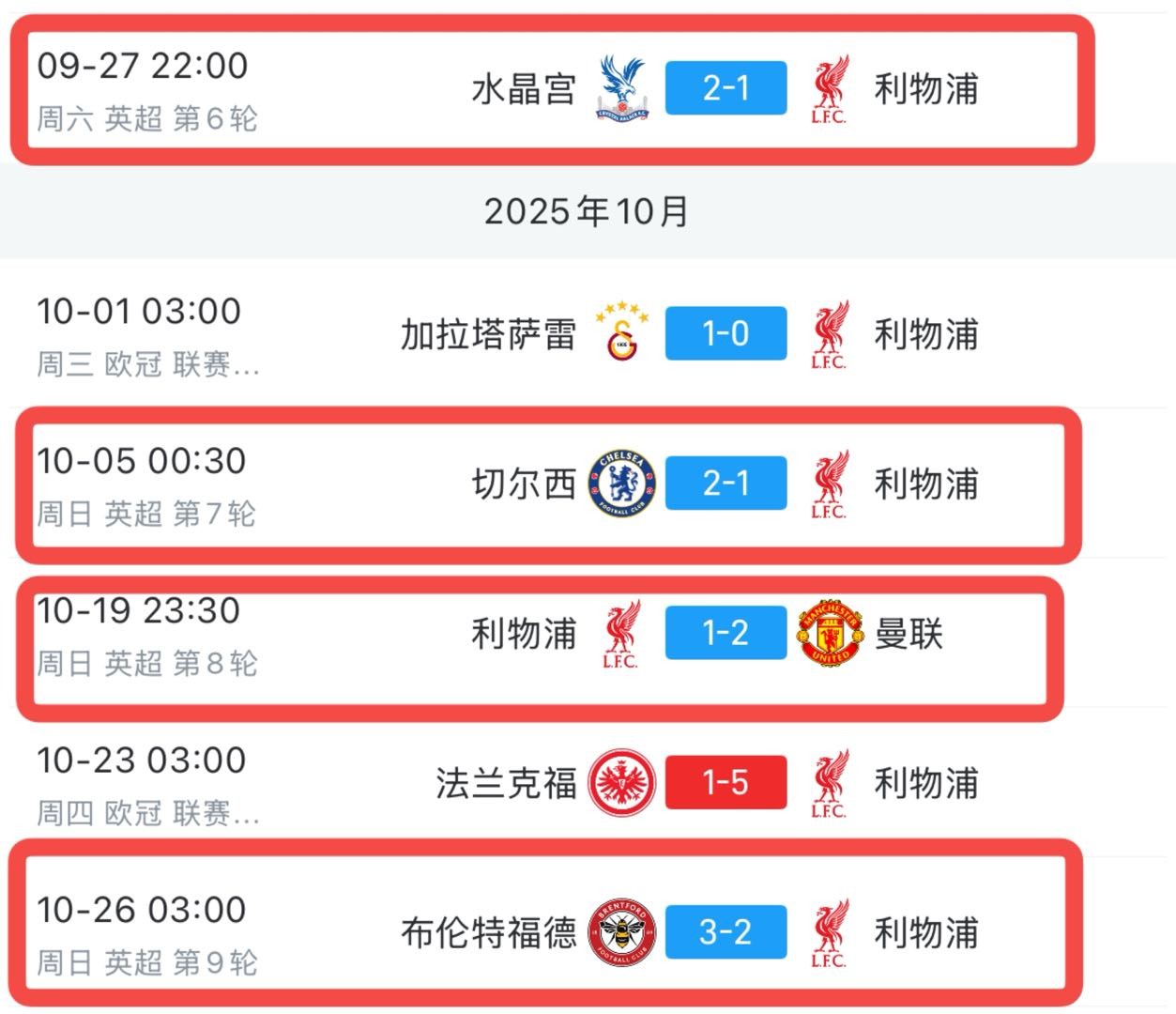 2024-25赛季英超,卫冕冠军利物浦在开局联赛5连胜后紧跟着迎来一波4连败,前后表现判若两队。 在欧冠赛场,利物浦的表现也差强人意,虽然战胜马竞和法兰克福,但在客场输给加拉塔萨雷多少还是让人有些意外。 文章导航 跟队:输给布伦特福德后,利物浦球迷高唱斯洛特明早就下课 阿莫林在老特拉福德逗留到很晚,为等待的球迷签名并耐心合照