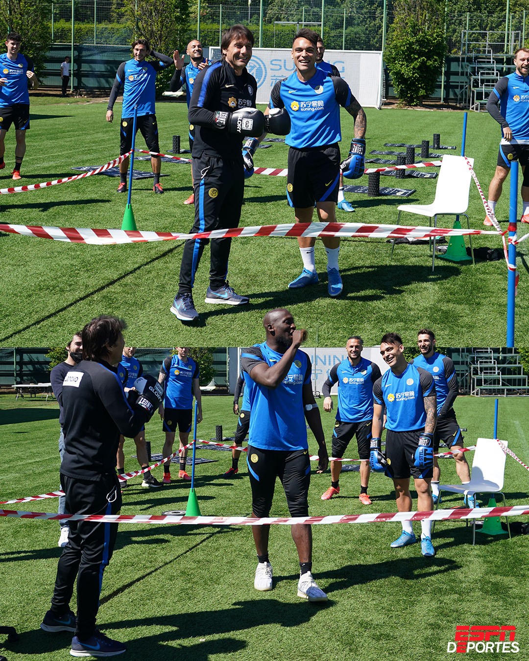不过,两人在之后以“男人的方式”解决了问题。在那场比赛之后的一堂训练课上,球队在训练场上搭起了一个临时的拳击场,而孔蒂与劳塔罗则是来了一场拳击,不嫌事儿大的卢卡库担任主持人兼裁判。