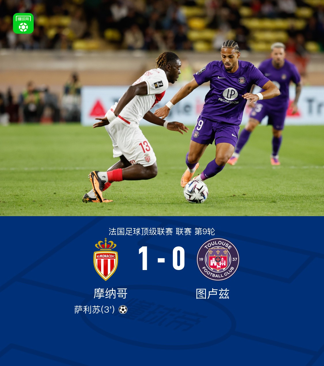 北京时间10月26日1:00,法甲联赛第9轮,摩纳哥坐镇主场迎战图卢兹。比赛开始仅三分钟,摩纳哥迅速进入状态,瓦塔拉送出精准助攻,萨利苏冷静施射破门,为主队取得领先。此后双方均未能改写比分,最终摩纳哥以1-0战胜图卢兹,全取三分。