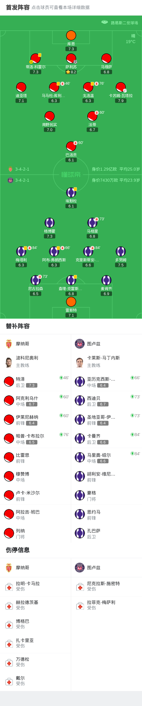 第3分钟,萨利苏头球破门,摩纳哥闪击得分,1-0