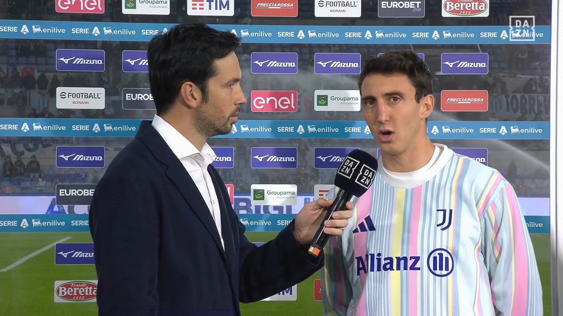 在意甲第8轮客场挑战拉齐奥的比赛开始前,尤文图斯后卫安德烈亚-坎比亚索接受了来自DAZN的采访。