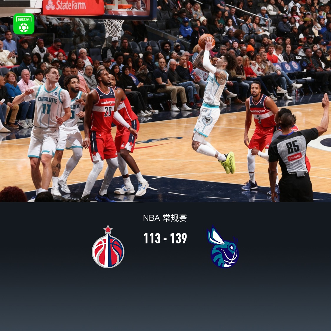 北京时间10月27日NBA 常规赛,华盛顿奇才对阵夏洛特黄蜂。半场奇才62-51黄蜂,最终奇才113-139黄蜂。