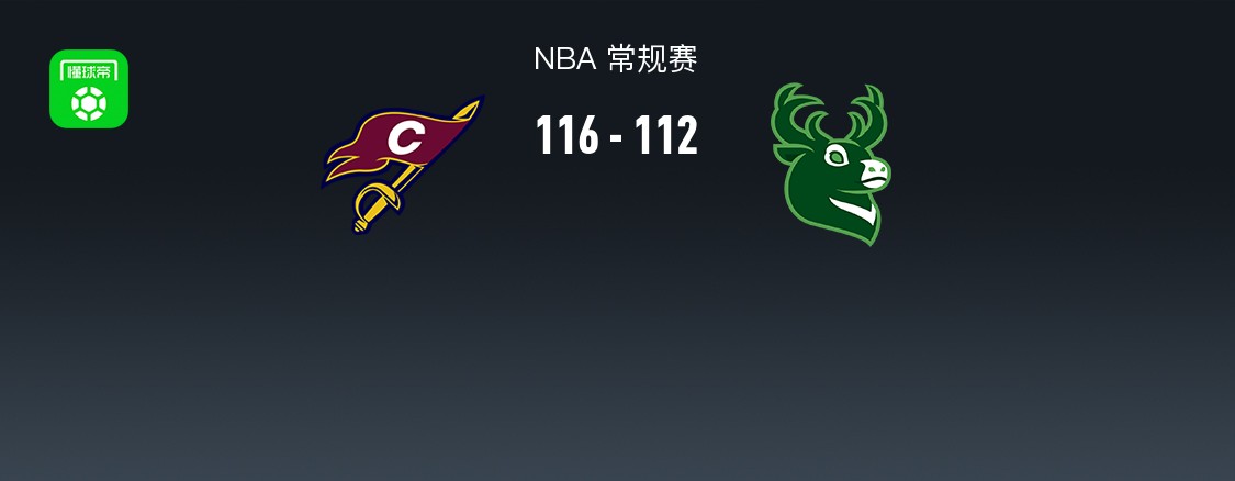 第四节骑士米切尔拿下10分,雄鹿字母哥拿下11分,最终骑士116-112战胜雄鹿