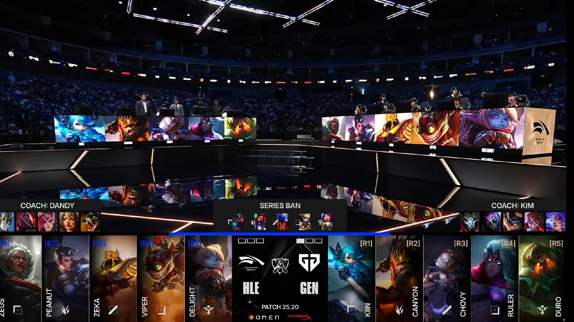 第58分钟,Peanut赵信被Duro泰坦勾到,复活甲起来后被Canyon皇子框住,HLE后续团战无力招架,GEN一波结束比赛;