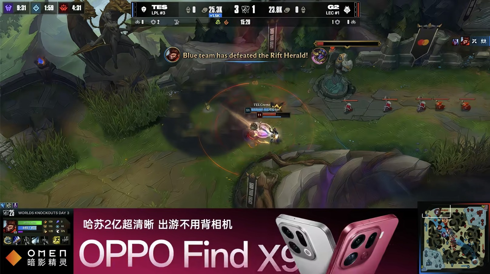 第25分钟,G2尝试开狼母结果被拉扯麻了,TES1换5打出ACE后收下大龙;