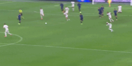 第8分钟,恰尔汗奥卢开出任意球,劳塔罗头球顶高