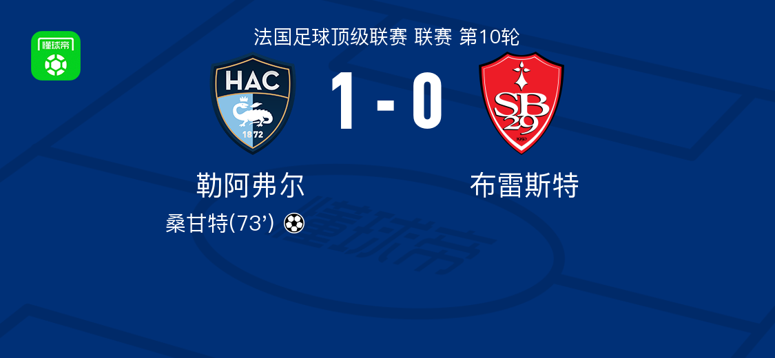 北京时间10月30日,法国足球甲级联赛第10轮,勒阿弗尔坐镇主场迎战布雷斯特。比赛中,扎瓦维送出助攻,桑甘特破门得分,为球队打入制胜一球。最终,勒阿弗尔以1-0战胜布雷斯特,全取三分。