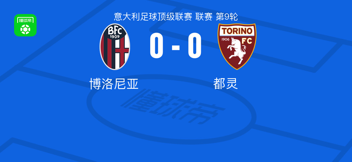 北京时间10月30日意大利足球顶级联赛 联赛 第9轮,博洛尼亚主场对阵都灵。最终比分博洛尼亚 0–0 都灵。