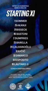 北京时间10月30日3:45,意甲第9轮,国米主场对阵佛罗伦萨。赛前首发公布。