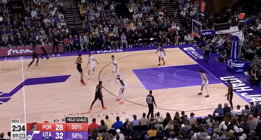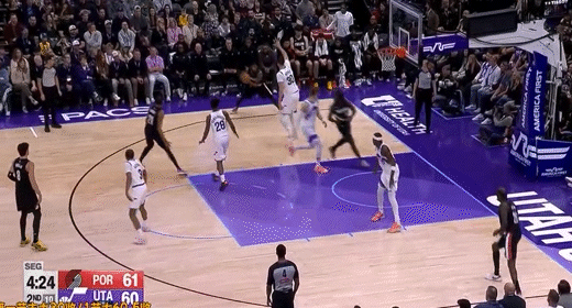 第四节爵士基扬特-乔治拿下13分,开拓者朱-霍勒迪拿下9分,最终爵士134-136不敌开拓者