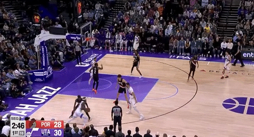 第三节爵士努尔基奇拿下6分,开拓者朱-霍勒迪拿下8分,第三节结束爵士98-117落后开拓者