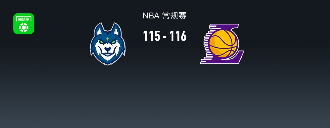 第四节森林狼麦克丹尼尔斯拿下9分,湖人里夫斯拿下8分,最终森林狼115-116不敌湖人