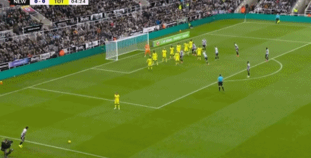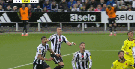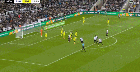 第24分钟,托纳利角球开出,舍尔头球破门,纽卡1-0热刺