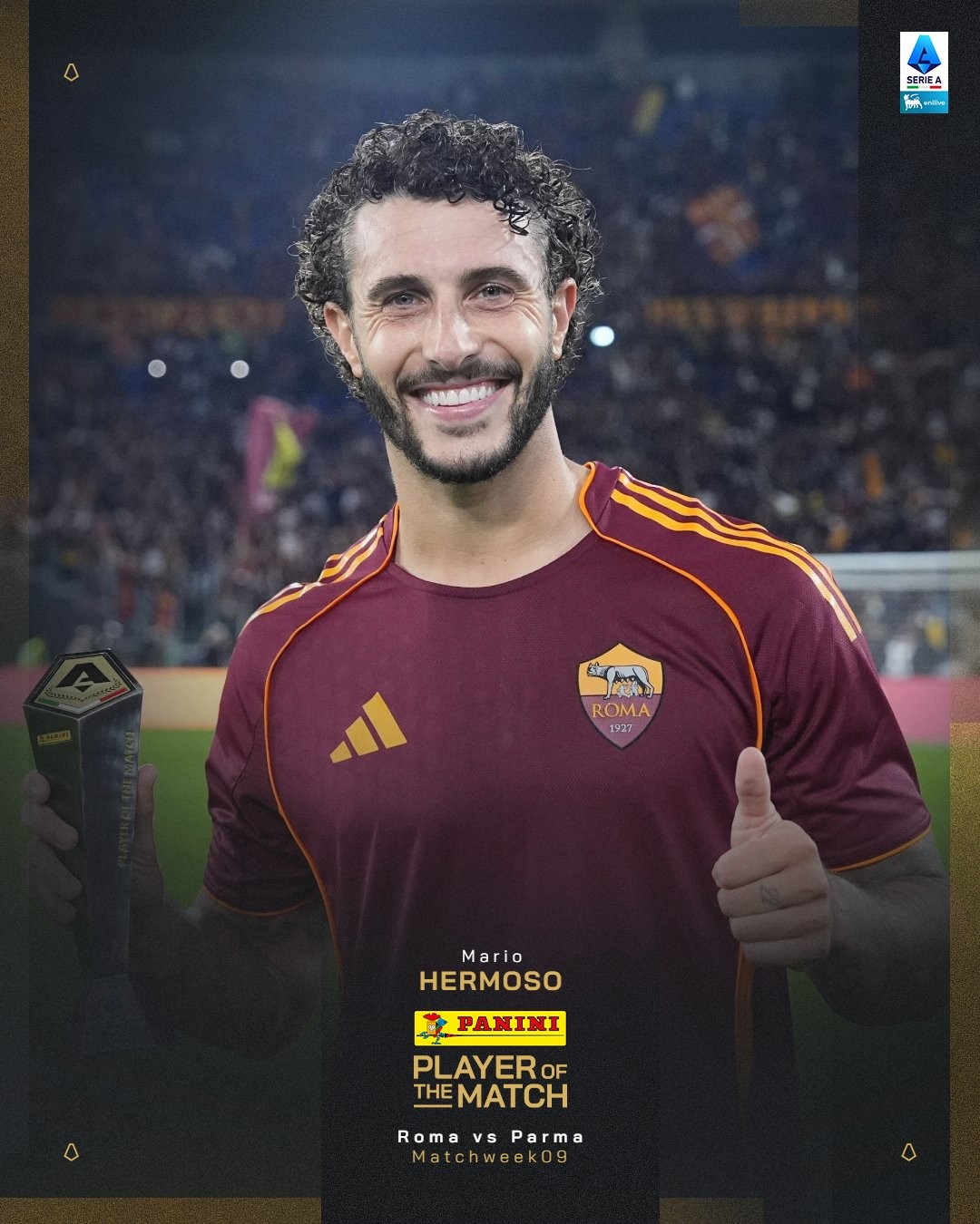北京时间10月30日,在西甲第9轮的比赛中,罗马主场2-1战胜帕尔马,继续与那不勒斯一同领跑积分榜,赛后此战打进一球的埃尔莫索当选意甲官方全场最佳球员。