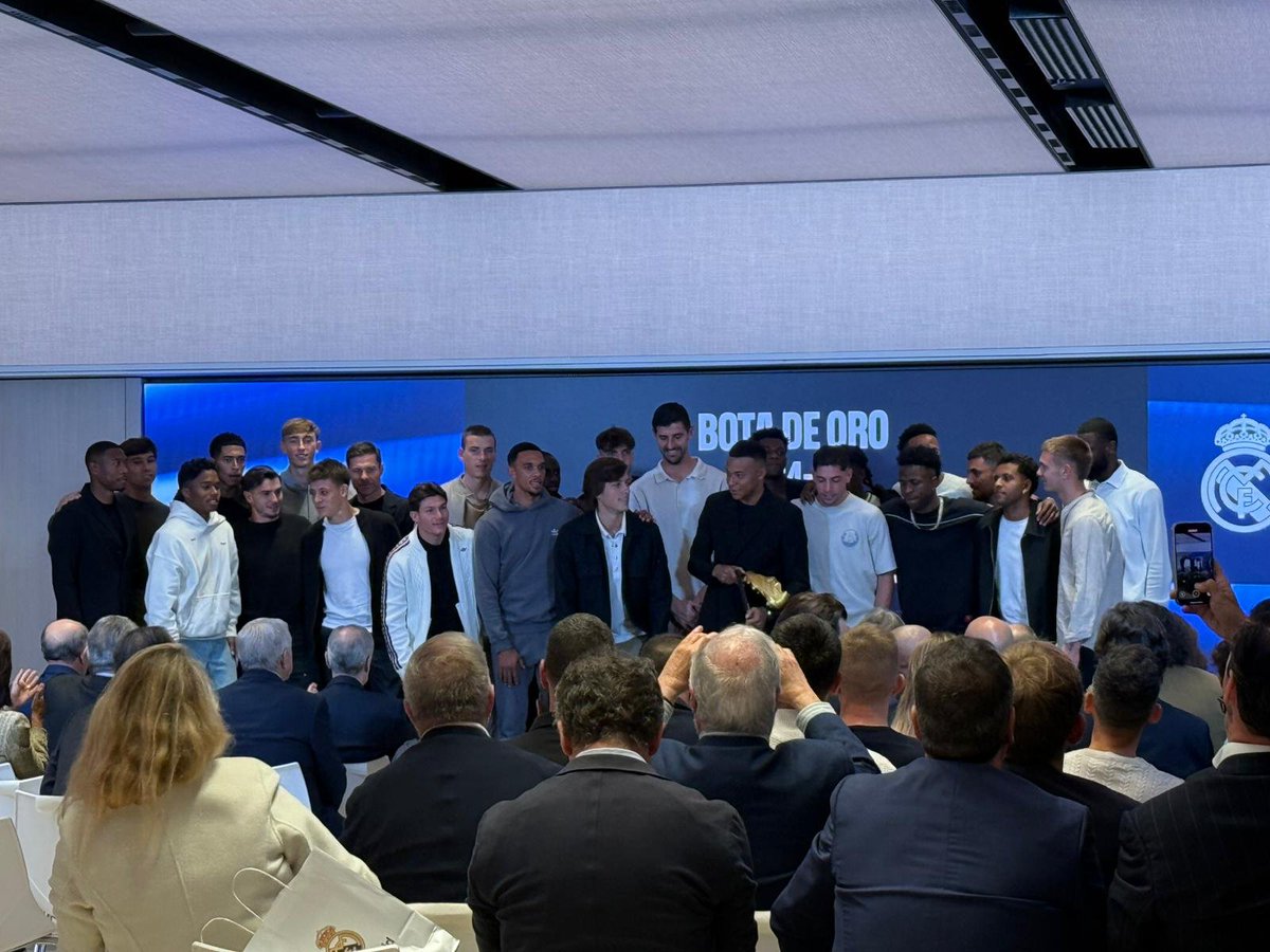 10月31日,姆巴佩在伯纳乌领取了2024-25赛季欧洲金靴奖,皇马全队出席仪式。