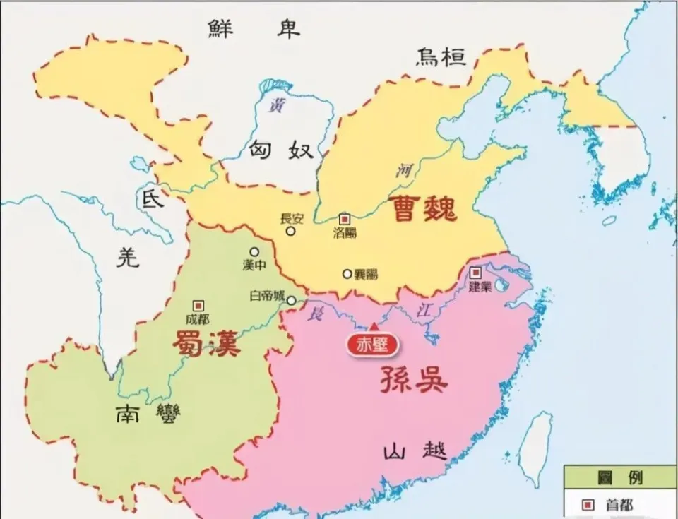 此后,江东的孙权在建康(今江苏省南京)称帝,三国鼎立的局面形成。