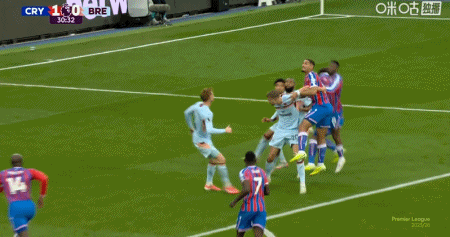 第30分钟,莱尔马助攻,马特塔头球破门,水晶宫1-0布伦特福德