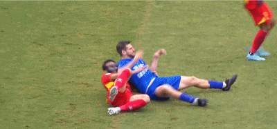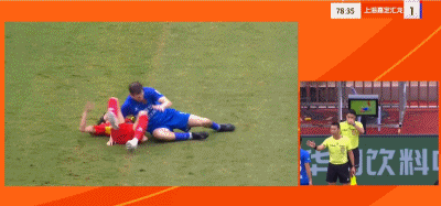第79分钟,科菲倒地情况下附加动作,被裁判红牌罚下,嘉定汇龙十人应战
