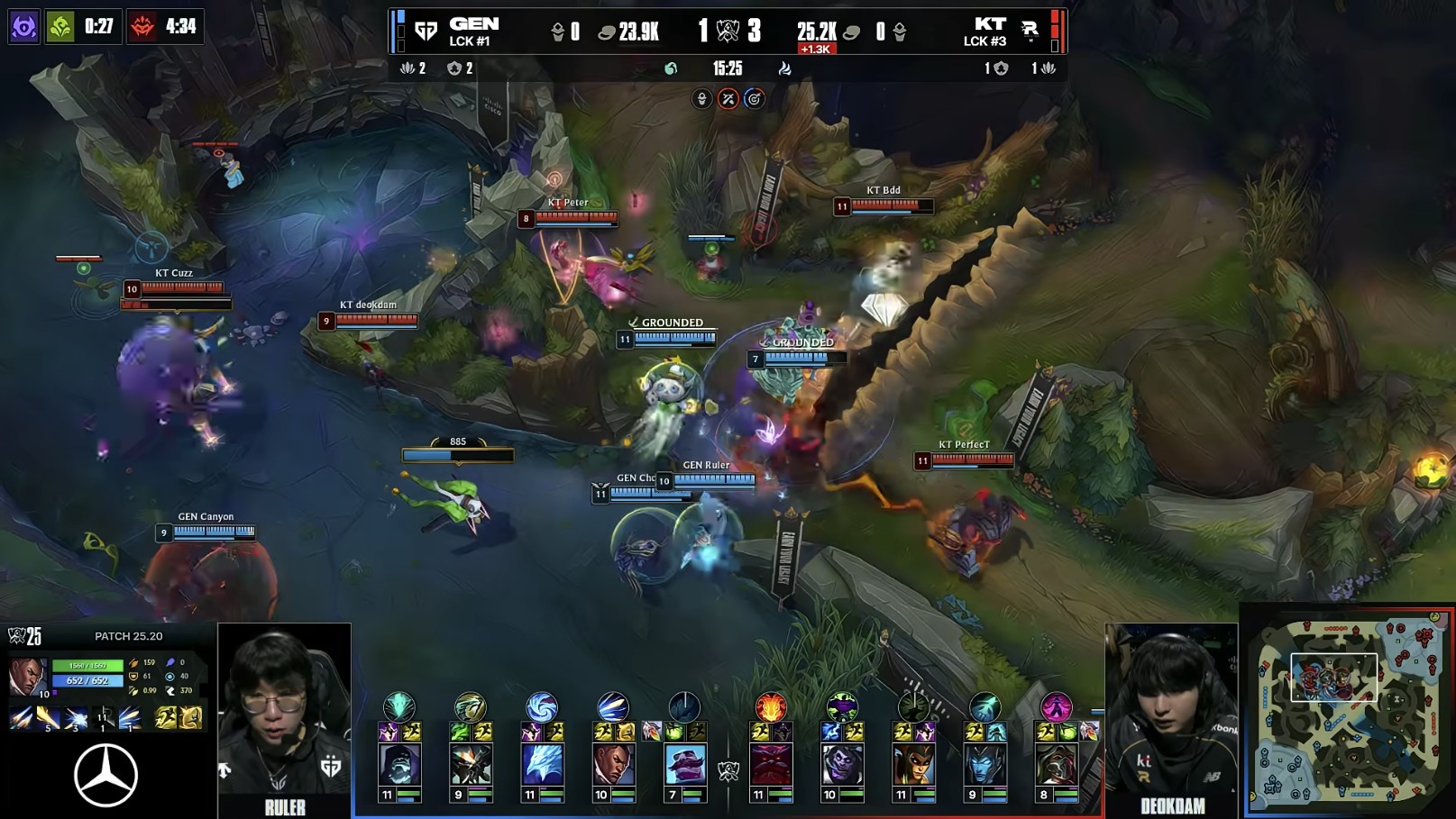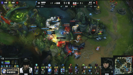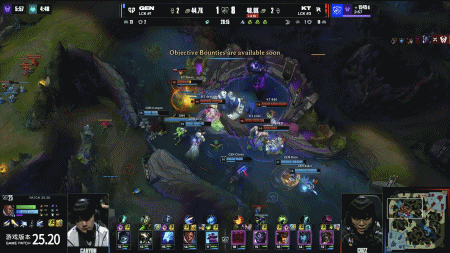 第15分钟,Duro过于着急开团Bdd反而把自己的阵型完全打烂,GEN上野辅被击杀后KT拿下峡谷先锋和小龙;