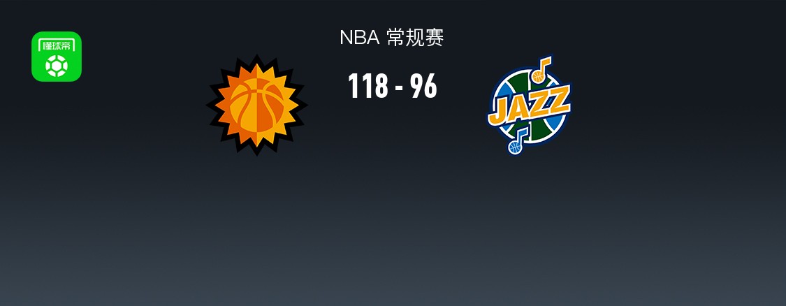 第四节太阳德文-布克拿下7分,爵士马尔卡宁拿下9分,最终太阳118-96战胜爵士