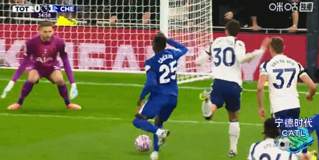 第53分钟,詹姆斯传中,恩佐头球攻门高出