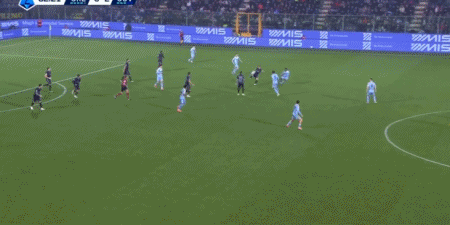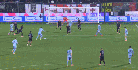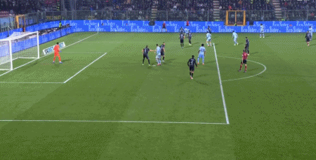 第17分钟,奥蓬达左路底线传中,比安切蒂抢先将球破坏