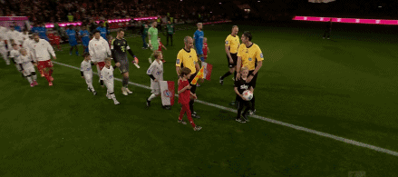 双方球员步入球场,大战即将打响