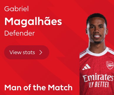 最终经过英超官网球迷投票,加布里埃尔以42%的得票率击败赖斯(36%)等人,当选全场最佳球员。