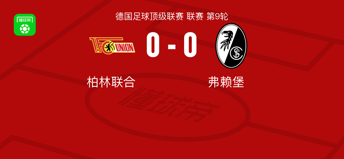 北京时间11月1日德国足球顶级联赛 联赛 第9轮,柏林联合主场对阵弗赖堡。最终比分柏林联合 0–0 弗赖堡。