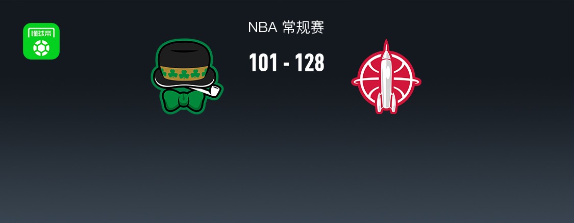 第四节凯尔特人沃尔什拿下10分,火箭杰夫-格林拿下6分,最终凯尔特人101-128不敌火箭