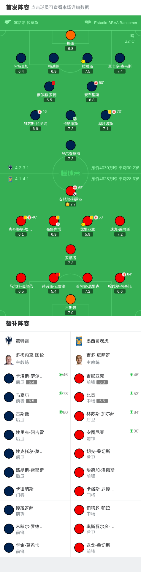 第32分钟,蒙特雷球队豪尔赫-罗德里格斯吃到红牌。
