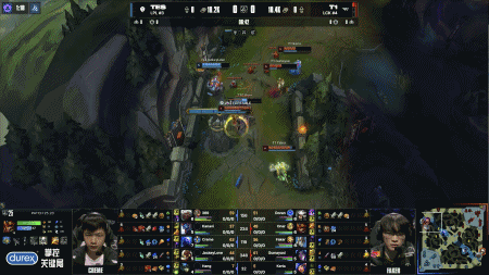 第6分钟,T1上路4包2,Oner皇子盖住Hang娜美,Faker加里奥跟上大招,TES下路双人组被击杀,与此同时Kanavi巨魔拿到第一条小龙;