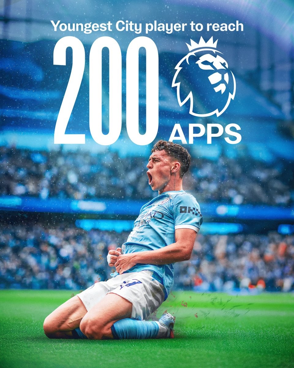 据统计,福登成为曼城队史第15位达成英超200场里程碑的球员,也是达成这一里程碑最年轻的球员(25岁158天)。