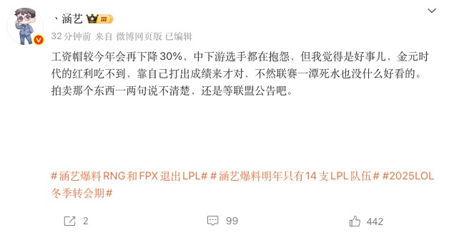 赶在LPL的队伍失利之后说几个事儿吧,有2只队伍下赛季大概率退出LPL(注:此前发博确定位RNG和FPX),还没锁死所以严谨点。