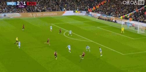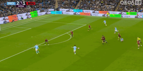 第60分钟,福登分球,奥赖利突入禁区低射破门,曼城3-1伯恩茅斯