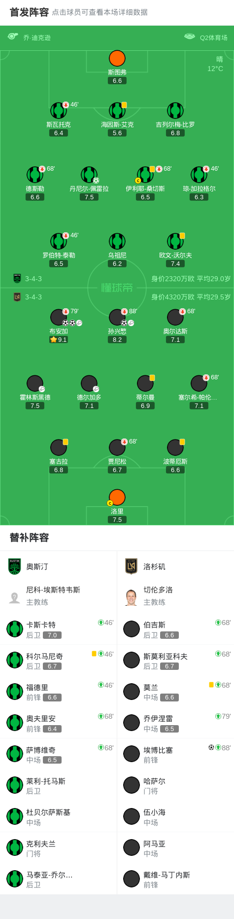 北京时间11月3日美国职业大联盟 1/8决赛,奥斯汀主场对阵洛杉矶。奥斯汀丹尼尔-佩雷拉破门。洛杉矶孙兴慜破门,布安加梅开二度,埃博比塞破门。最终比分奥斯汀 14 洛杉矶。