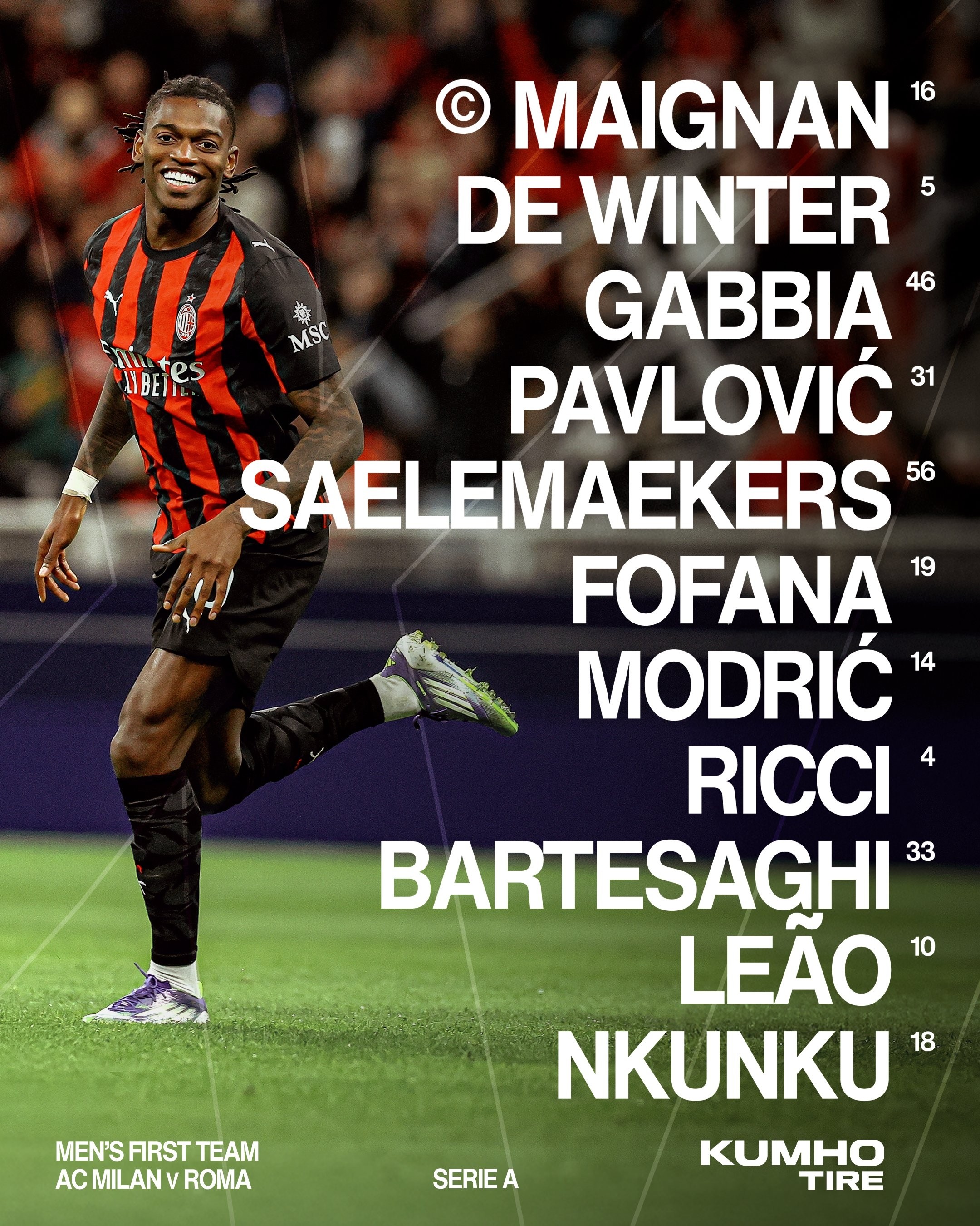米兰vs罗马:莱奥搭档恩昆库出战,罗马稍后带来